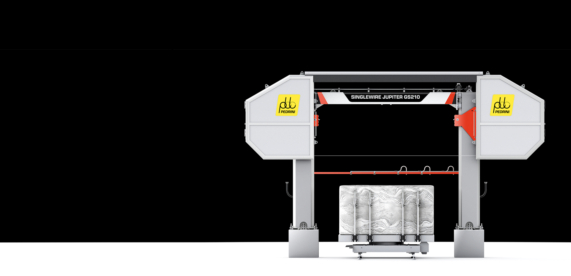 SINGLEWIRE JUPITER GS210 is a single-wire and two-wire machine for marble and granite with an open structure used for squaring blocks and cutting slabs and/or large thicknesses of stone materials. The machine iso composed of two columns rigidly fixed to the foundations and a connecting crossbeam, built in normalized steel work.