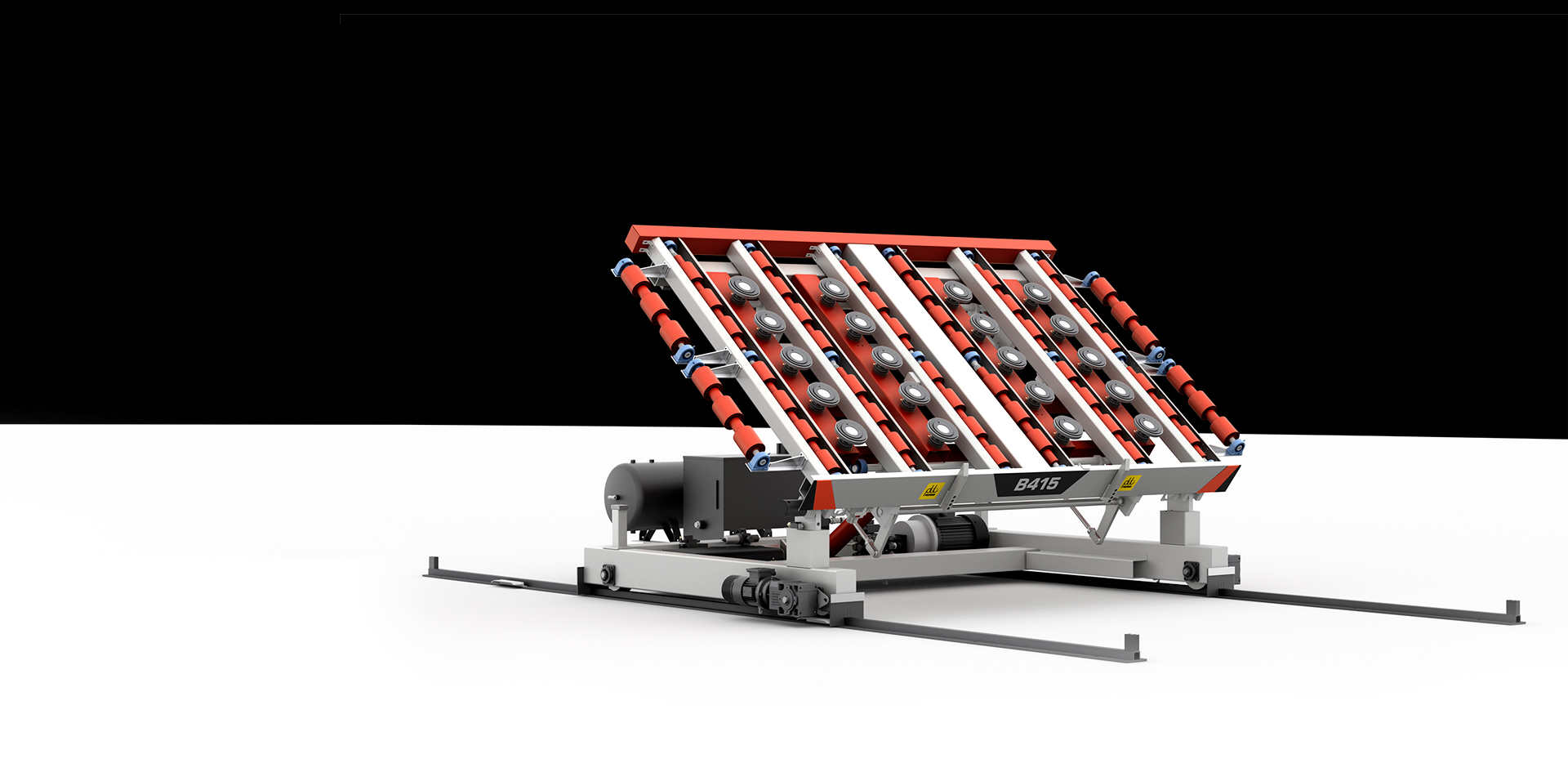 Le macchine sono composte da una struttura basculante mobile che si muove su una coppia di binari fissati al pavimento per avvicinarsi al supporto lastre in posizione verticale per la presa o lo scarico del materiale. Il piano basculante comprende una serie di rulli motorizzati per il trasporto delle lastre in orizzontale.