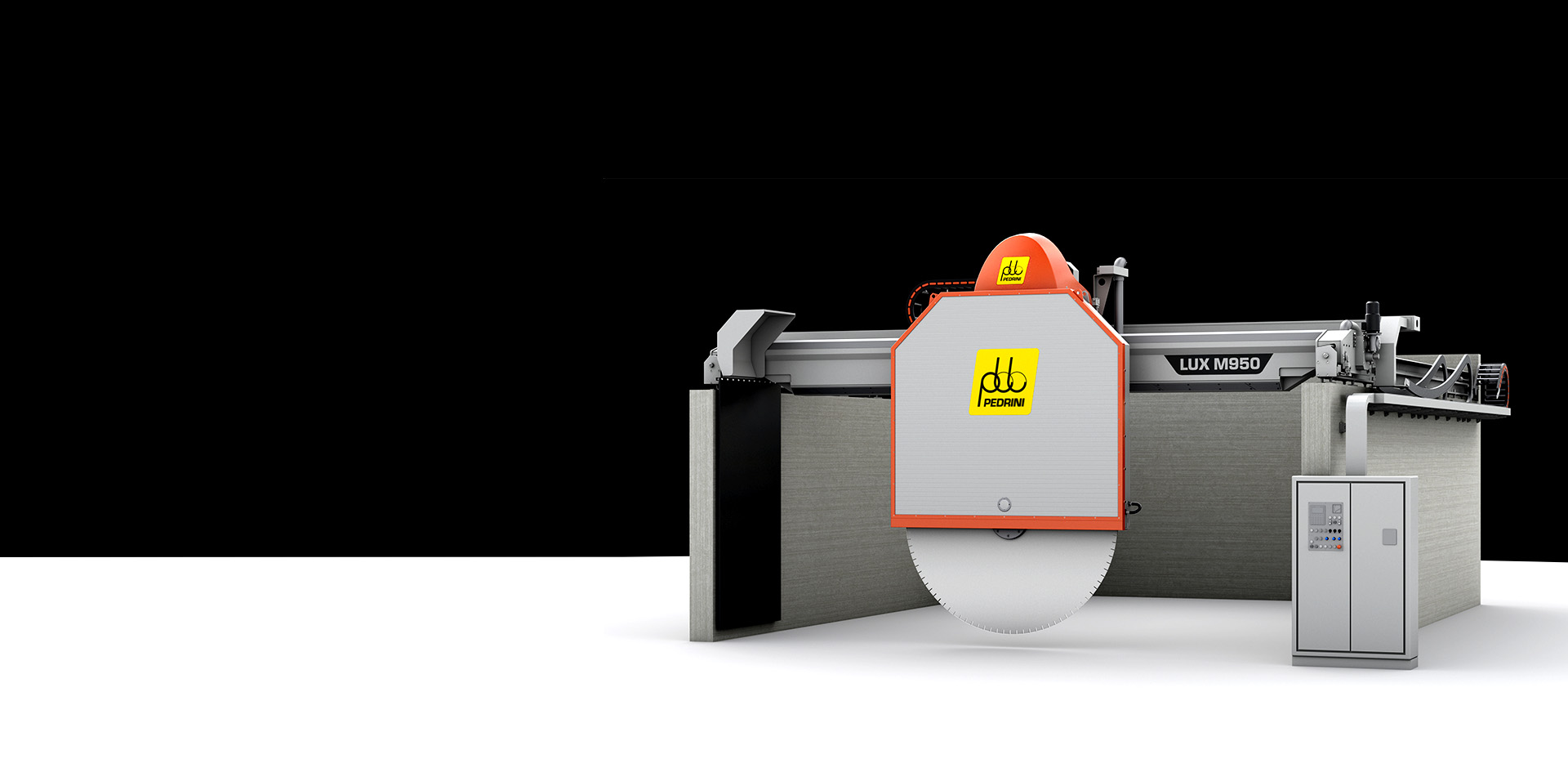 Macchina a ciclo automatico per il taglio di blocchi di altezza massima 1000 mm, destinata alla produzione di lastre a spessore per arte funeraria, edilizia e arredamento. Dotata di disco a scomparsa che riduce la rumorosità in qualsiasi posizione di lavoro.