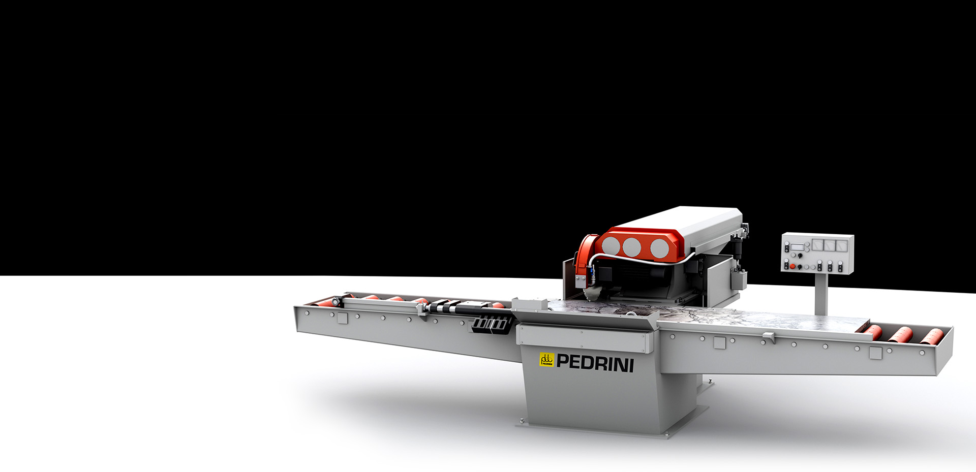 Macchine a un disco diamantato per l’attestatura e la produzione di elementi a misura finita, che eseguono il taglio trasversale di filagne di marmo o granito in modo perfettamente ortogonale al lato di riferimento.