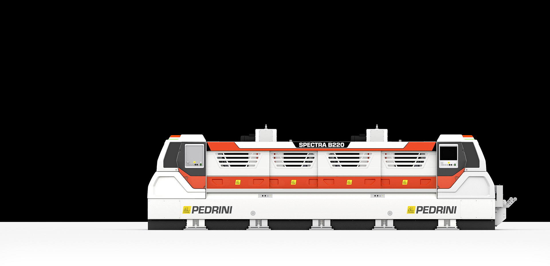 SPECTRA è la calibratrice planetaria progettata da Pedrini che esegue la rettifica dello spessore delle lastre di pietra naturale tra cui marmi, graniti e quarziti. SPECTRA può lavorare anche i materiali compositi ed è disponibile in due versioni in base alla larghezza massima lavorabile della lastra: 1700 mm - 2200 mm.