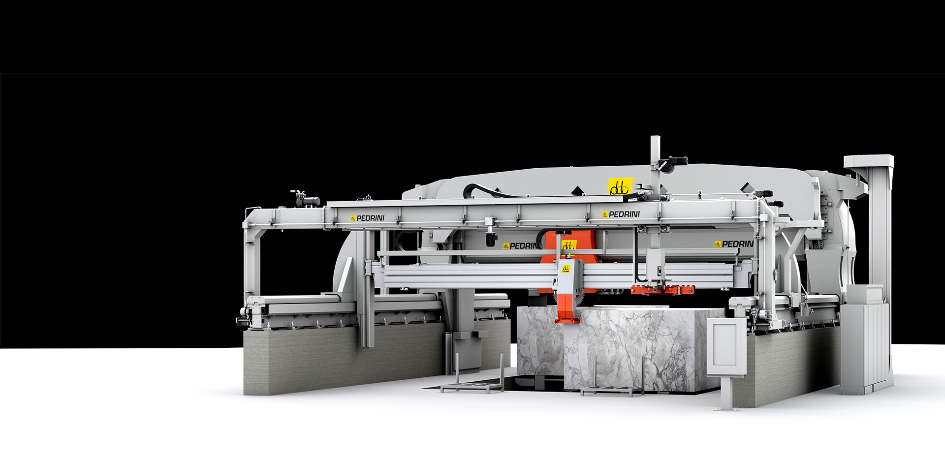 Blocks to be cut are moved to the cutting area by special motorized block carrier trolleys. The cutting centre is easily programmed from a console, placed on the machine, with a user-friendly colour screen that allows management and display of the various processing cycles.