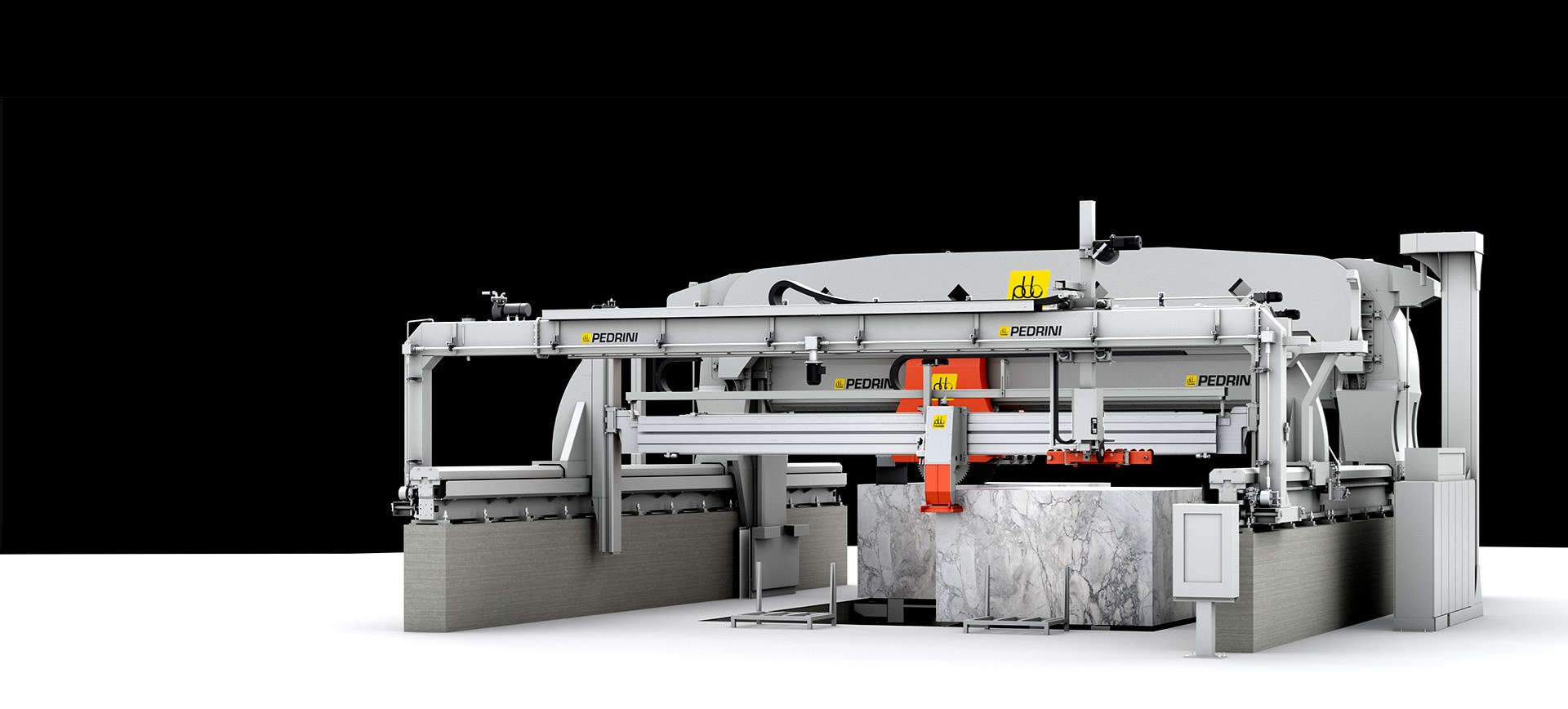 The Arco di Trionfo cutting centre has been designed for cutting granite blocks and other types of natural stones by means of a series of water-cooled diamond discs to obtain strips with predefined thickness and height.