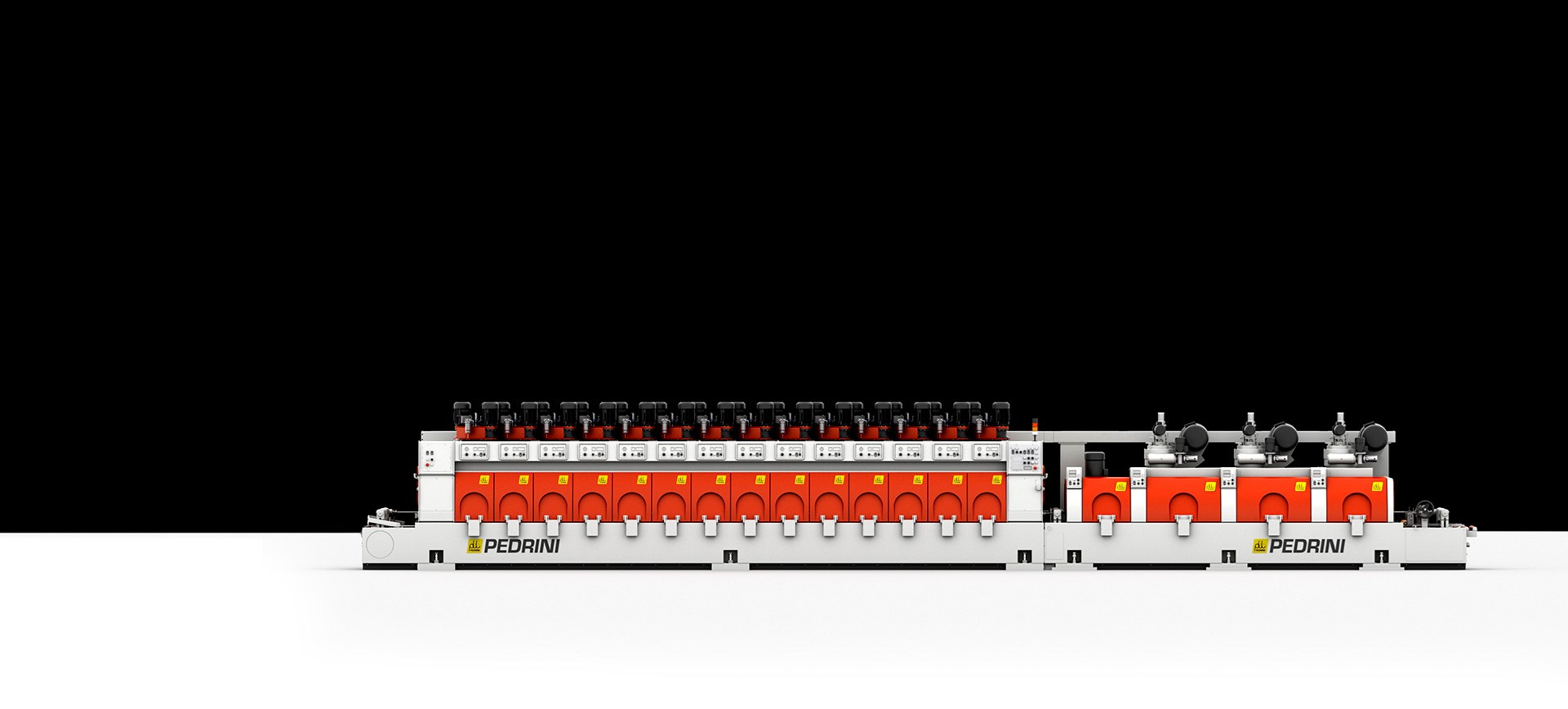 SUPERNOVA-G is a machine, available in different models, designed and manufactured by Pedrini to calibrate, hone and polish granite strips used for the industrial production of pavement tiles and modular tiles ("modulgranito," international standard tiles).