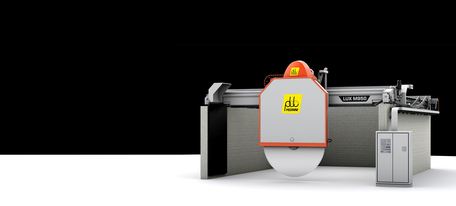Macchina a ciclo automatico per il taglio di blocchi di altezza massima 1000 mm, destinata alla produzione di lastre a spessore per arte funeraria, edilizia e arredamento. Dotata di disco a scomparsa che riduce la rumorosità in qualsiasi posizione di lavoro.