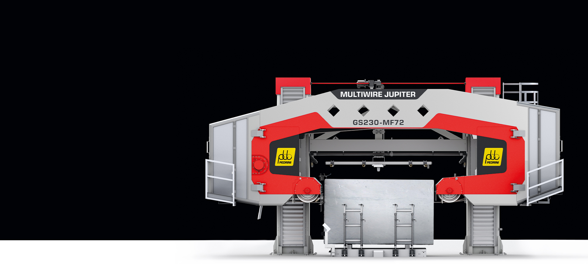 Si avvale di brevetti esclusivi e all’avanguardia che la rendono unica nel suo genere. Il sistema di copertura del volano mediante fasce modulari e le soluzioni di tensionamento dei fili diamantati rappresentano alcuni dei punti di forza tecnologici sviluppati da Pedrini. Grazie a queste soluzioni brevettate, la macchina multifilo per marmo lavora in condizioni ottimali, riducendo l’usura dei componenti, migliorando la sicurezza operativa e offrendo performance costanti nel tempo, anche in caso di utilizzo intensivo su più turni di produzione.